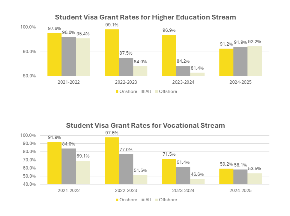 You will notice that started in 2022, there has been substantial reduce in grant rates for student visa, especially in Vocational stream.